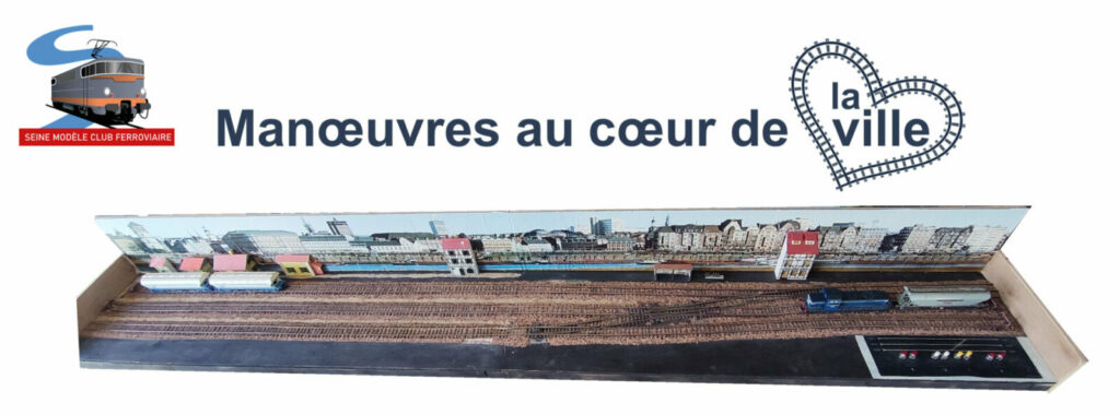 Pour cela nous avons voulu concevoir une maquette simple à transporter, rapide à installer, mais riche en possibilités ludiques et techniques. C’est ainsi qu’est née notre planche de manœuvres ferroviaire : « Manœuvres au cœur de la ville« , un petit univers de 2,00 mètres sur 0,30 mètre, pensé comme un véritable terrain de jeu pour les amateurs de manœuvres et les plus jeunes.