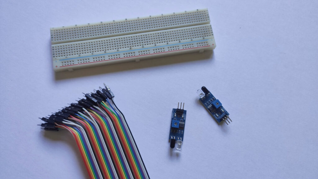 💡 Astuce : les capteurs infrarouges sont très sensibles à la lumière ambiante. Testez votre installation dans l’environnement réel d’utilisation. Il est possible d’ajuster le seuil de détection des capteurs à l’aide du potentiomètre sur celui-ci.